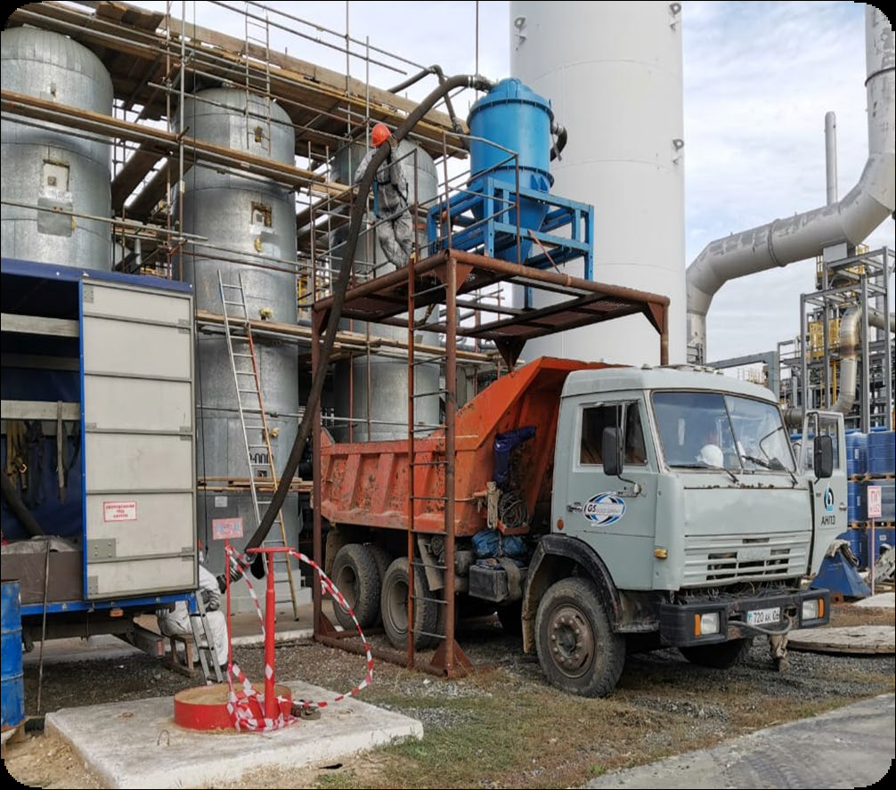Выгрузка катализаторов и адсорбентов с применением вакуумной установки